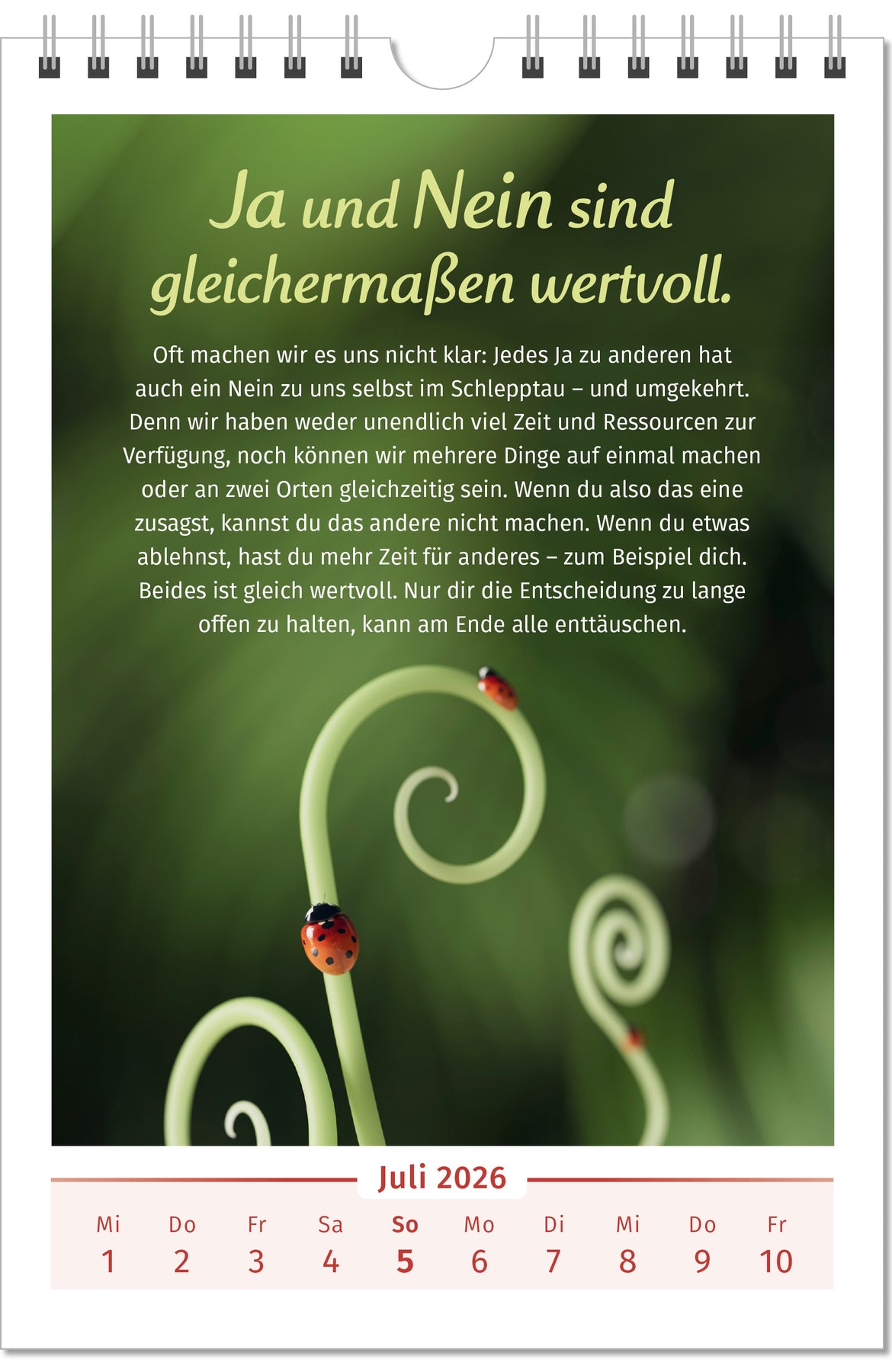Der Original-Wandkalender, der meistgekaufte deutschsprachige Kalender Deutschlands, im Großformat, 40 Blatt mit Spiralbindung. Mit motivierenden Denkanstößen, psychologischen Impulstexten und beeindruckenden Naturfotos